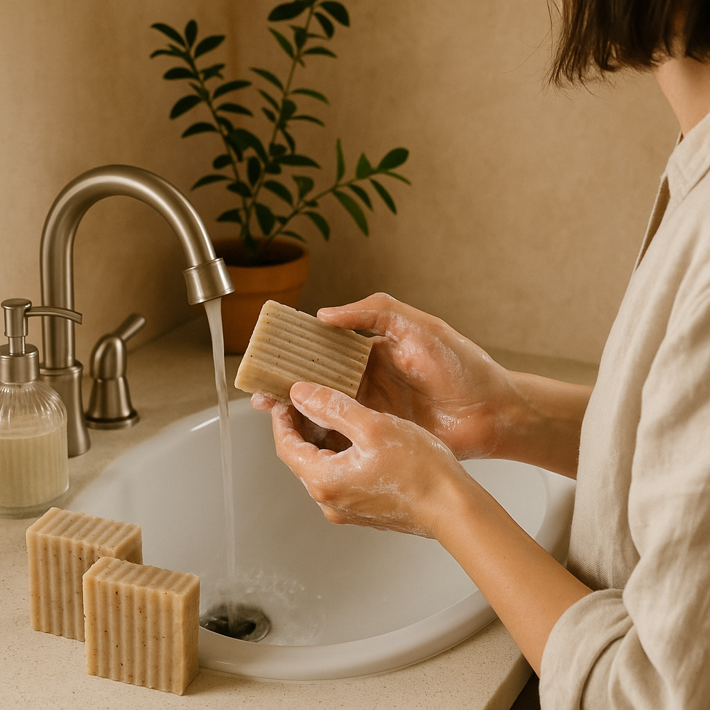 This hibiscus flower soap was handcrafted by grounding the dried flower petals up and infusing the oils with the petals, and adding some petals to the soap.
