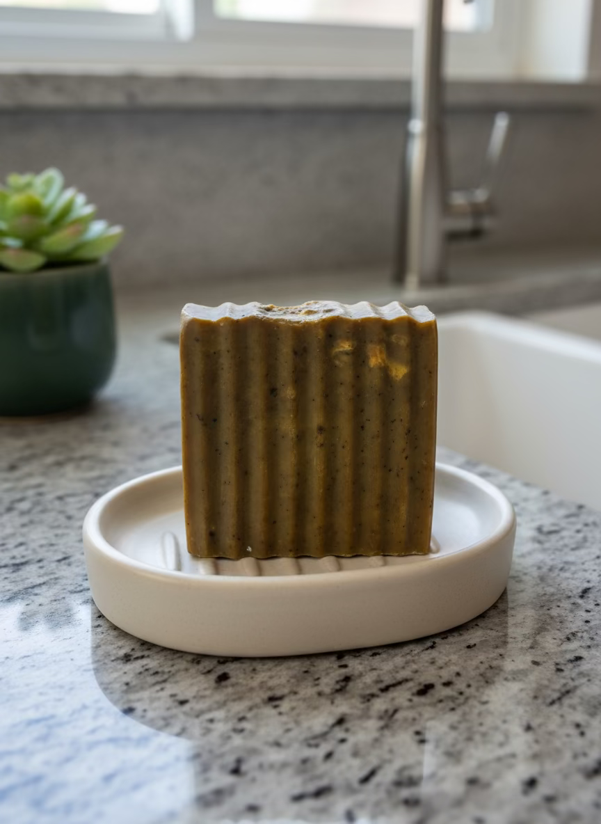 Crafted in an iron pot, My version-African Black soap is handcrafted from palm oil, canola oil, plantain ash and water. Experience the benefits of this traditional soap, known for its cleansing and nourishing properties, and feel its gentle yet effective formula on your skin.
